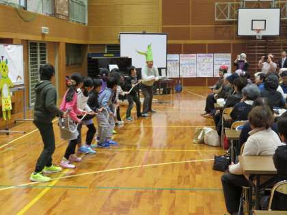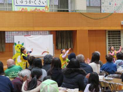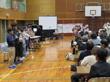 感謝の気持ちを込めて学年ごとに発表をします。上から、2年生、3,4年生、5,6年生です。温かい拍手をいただきました。
