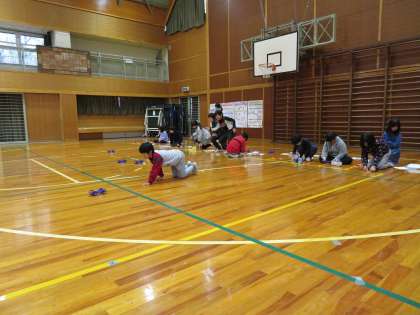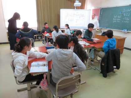 5,6年生は、中学校のALTの先生と外国語の授業を行いました。3,4年生は、理科の「風やゴムで動かそう」の授業をしていました。