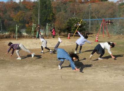 休み時間 公開日 2019/12/12 更新日 2019/12/12 今日のスナップ 休み時間に、側転をシンクロさせて行うことに挑戦していました。突然、風が吹いて木の葉がグランド中に舞い降りました。みんなでキャッチしようと走り回っていました。