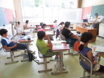 5,6年生がALTの先生と外国語の授業を行いました。ピクチャーカードを見ながら、単語の発音練習です。