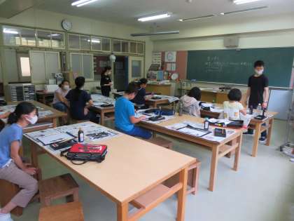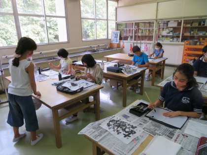 5,6年生が、墨で絵を描くという図工の授業に取り組んでいました。習字と違う筆使いを工夫していました。