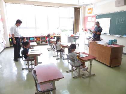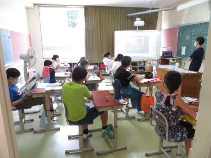 1年生は国語で、カタカナの勉強をしていました。3,4年生は、社会の「ゴミ問題」について考えていました。5,6年生は、歴史の聖武天皇とその時代について学習していました。
