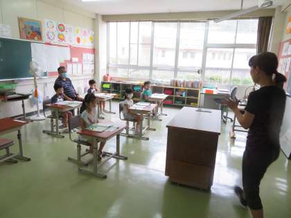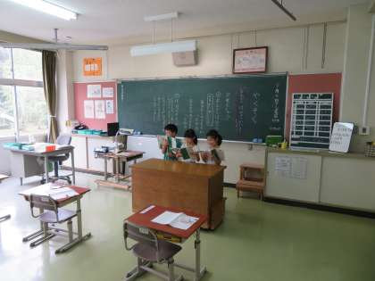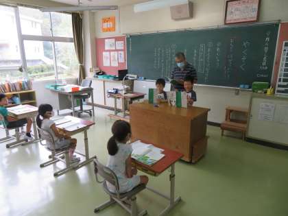 1年生が、国語の「やくそく」というお話の音読発表会をしました。2グループが順番に発表し、お互い聴き合いました。声色を変えたり、気持ちを込めて音読したり、とても工夫が感じられるいい発表でした。