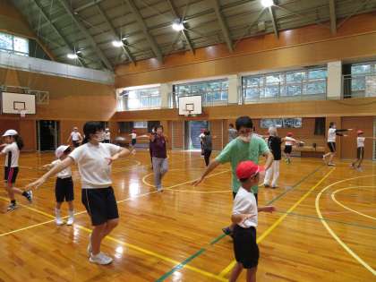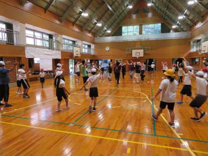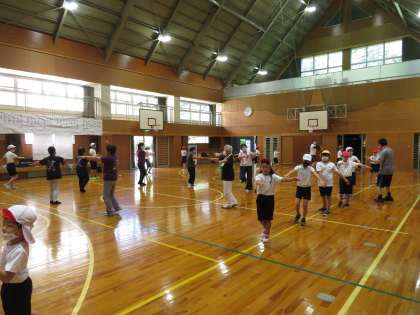 地域の踊りの先生たちに来ていただいて、「ビューティフルサンデー」と「瀬戸音頭」を練習しました。スポーツフェスタでは、地域の方たちと一緒に踊ります。教えてくださった先生方、ありがとうございました。