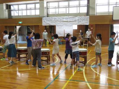 1,2時間目に太鼓練習を行いました。「夏祭り」の振り付けを新しく講師の先生から教わりました。大分仕上がってきました。