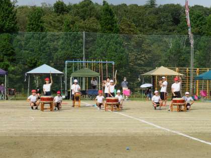 今年は最初に和太鼓の演奏です。5,6年生の「掛川昇龍太鼓」と3年生以上による「楽」です。