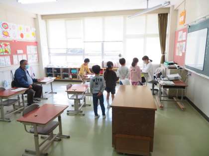1年生は国語で、三行日記を書いて、先生に見てもらっていました。3,4年生は、社会のプリントを記入していました。5,6年生は、社会で豊臣秀吉の学習です。