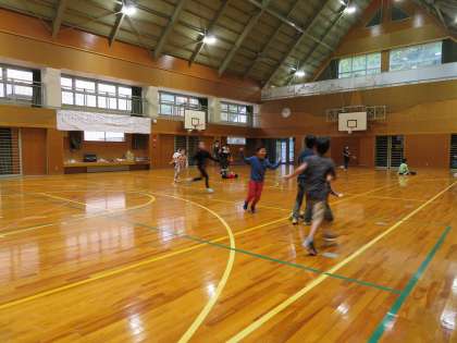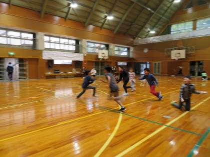 今日は雨なので、体育館で遊びます。多くの子は、鬼ごっこをして遊んでいました。