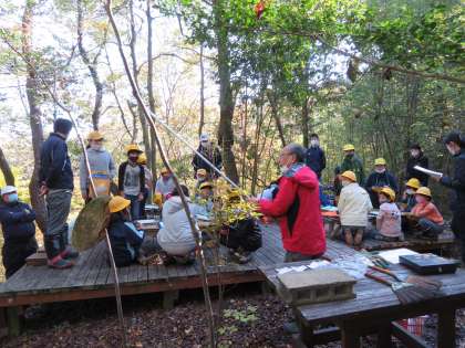 班ごとにシンボルツリーを決めます。まずは、説明を聞きます。