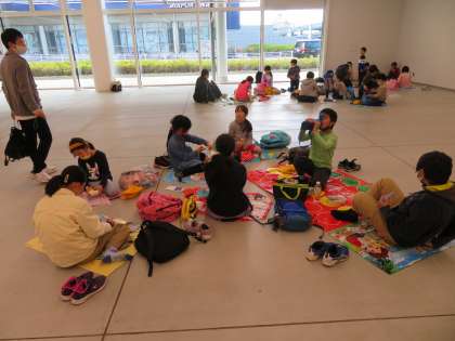 お楽しみの昼食タイムです。班ごとに「いただきまーす。」