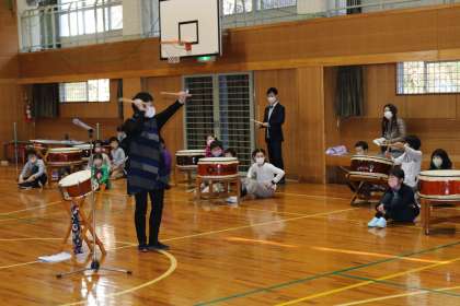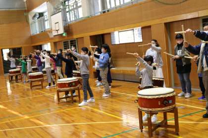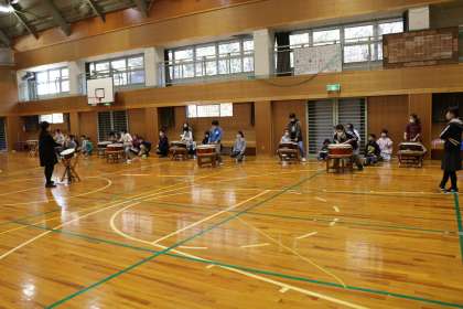 収穫祭に向けて、講師の先生に来ていただき、太鼓練習を行いました。先生の言われることを一生懸命聞いて、ひとつひとつ上達していきます。