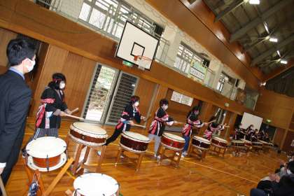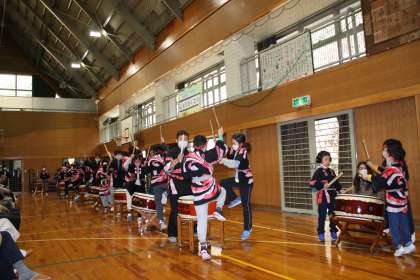 収穫祭3 公開日 2020/12/04 更新日 2020/12/04 最近の行事から 最後に、和太鼓の演奏を披露します。子どもたちは、よく頑張っていたと、地域の方からお褒めの言葉をいただきました。参加していただいた皆様、ありがとうございました。