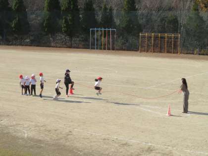 1年生が体育で、短なわ、長なわ、サッカーをしました。