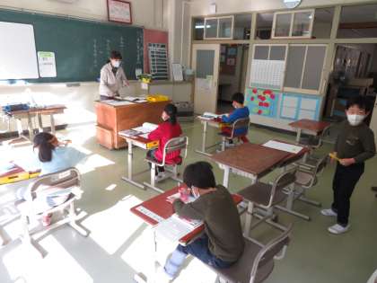 1年生が国語で「おみせごっこ」の準備をしていました。