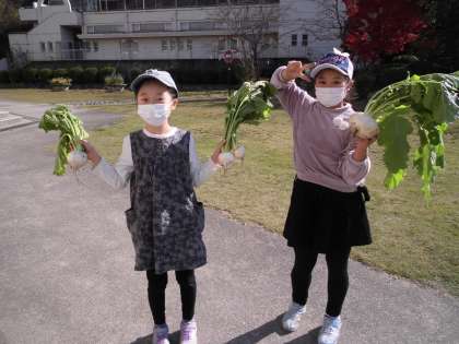 11月16日 2 公開日 2021/11/16 更新日 2021/11/16 今日のスナップ 1・2年生の体育は障害物を越えていく競争をします。その前にボール運動を取り組みました。6年生は聞き取りテスト前のちょっとした緊張です。4年生は立派なかぶを収穫しました。