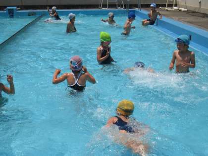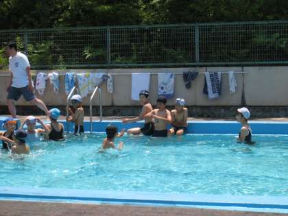 今日はプール開きがありました。まだ少し水温が冷たかったかもしれませんが、天気が良く、ほとんどの子は元気いっぱいに泳いでいました。はじめて入る1年生もしだいに慣れてきて、笑顔いっぱいで過ごすことができました。
