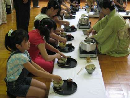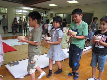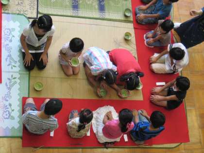 お茶会(2) 公開日 2010/07/06 更新日 2010/07/06 最近の行事から お茶を点てる姿も、子どもながらなかなかさまになってきました。6年生は実に6回目のお茶会になります。下級生の子にも優しく教える姿もほほえましいです。