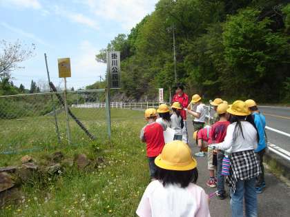 3,4年校外学習(1) 公開日 2011/05/10 更新日 2011/05/10 最近の行事から 今日は3,4年生が社会科「わたしの町、みんなの町」で、定光寺町へ校外学習に出かけました。学校から出発して、すぐに旧掛川小学校跡という石碑や養蜂場があることに気づきました。