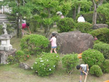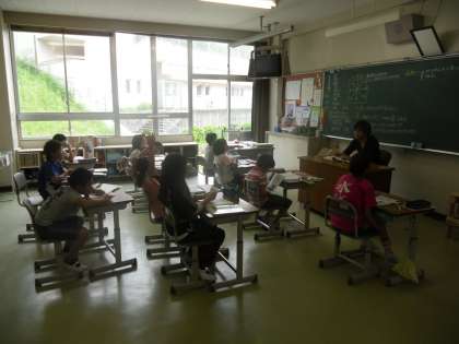 今日の授業風景(2) 公開日 2011/06/10 更新日 2011/06/10 今日のスナップ 3,4年生は社会科の授業でした。今日は8方位や地図記号を学習していました。ちょっとむずかしいかな。1年生は国語の授業で音読をしていました。また、掃除の様子もご覧ください。築山をきれいにしています。