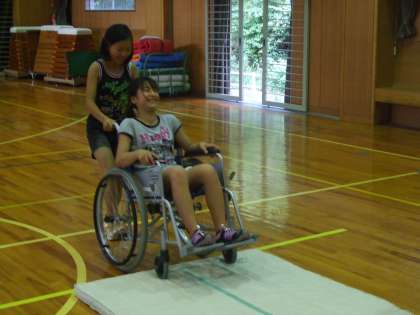 福祉実践教室 車いす(2) 公開日 2011/06/29 更新日 2011/06/29 最近の行事から 車いすに乗る時は、相手が痛くないようにやさしく足を持ち上げてステップにのせてあげます。押す人は下がよく見えないので、特に段差に気をつけなければならないというお話をききました。
