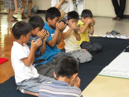 7/2 授業参観、お茶会(2) 公開日 2011/07/02 更新日 2011/07/02 最近の行事から 授業参観のあと、お茶会の練習が始まりました。まずは子ども同士で交代でお菓子を運び、そしてお茶を点てます。