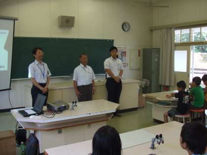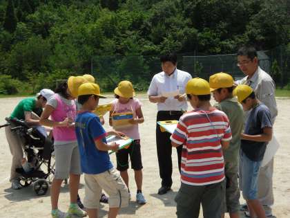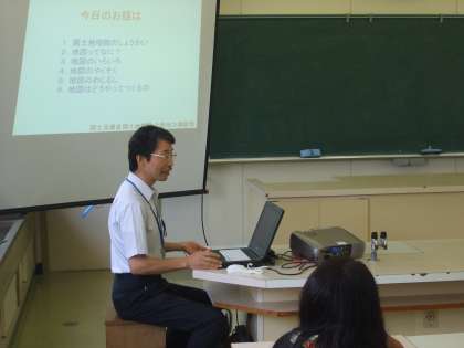 出前授業 地図教室(1) 公開日 2011/07/06 更新日 2011/07/06 最近の行事から 今日の3,4時間目に地図教室が行われました。これには3年から6年の児童が参加し、3時間目に地図帳で有名な国土地理院の方からお話をしていただきました。地図ができるまでのことや地図記号のお話を聞きました。中でも東日本大震災後の貴重な写真(3月12日早朝)などが映し出され、興味をひきました。