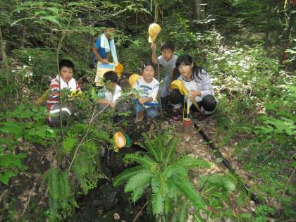 4班は川の上の方を選びました。みんなの紹介は、川の流れが気にいった。音が夏らしかった。川の水がとてもきれいだった。砂がふわふわだった。すずしい、静かで気もちがいい。川の中にサワガニやヤゴなどの生き物がいた。でした。