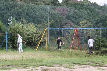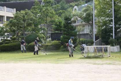 PTA親子環境整備(3) 公開日 2011/08/28 更新日 2011/08/28 PTA関連 刈った草も大量に出ました。みなさんの汗もたくさん出たと思います。くれぐれも水分の補給をして、体をお休めください。今日は本当にありがとうございました。