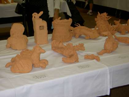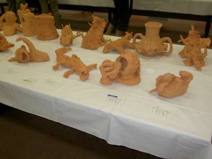 一昨日、昨日とせともの祭りが行われましたね。パルティせとでは子ども陶芸展が行われ、掛川小からも学年一点ずつ選ばれ、展示されました。力作が並んでいます。