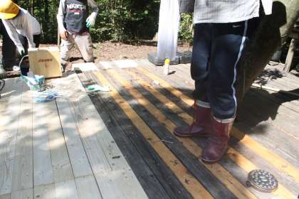 たくさんあった木材も5,6年生が上手にくぎを打ち付けて、新しいウッドデッキが完成しました!