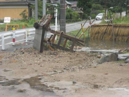 台風のつめ跡(2) 公開日 2011/09/22 更新日 2011/09/22 お知らせ 7月に全校で行った蛇が洞川もかなりの濁流でした。また、学校の近くの道路沿いでもがけ崩れがあり、かなり土やコンクリートがえぐられていました。児童のみなさんは危険防止の柵や黄色いテープがあるところは、絶対近寄らないでください。少しでも足を近づけると崩れ落ちる危険性があるので、十分気をつけてください。