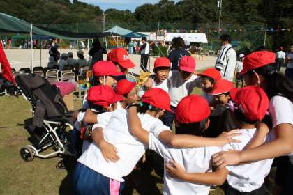 すばらしい青空のもと、掛川スポーツフェスタが行われました。約一ヵ月間練習してきた子どもたち。本番の今日、力を思う存分発揮しようと、気合いが朝から入っていました。開会式前の意気込みをごらんください。