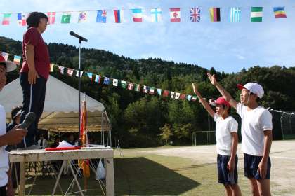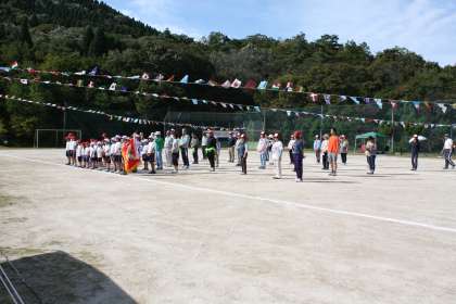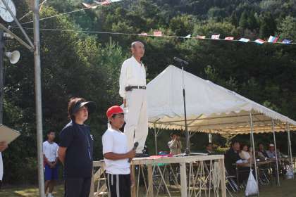 スポーツフェスタ(2) 公開日 2011/10/04 更新日 2011/10/04 最近の行事から 開会式では両町を代表して、まちづくり協議会の会長さんから開会の言葉をいただきました。地域の方々も子どもたちのうしろに整列しています。選手宣誓はとても力強く、これからの熱戦のスタートとなりました。