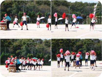 公民館種目のグランドゴルフ競技にはたくさんの地域の方が出場しました。なぜか校長先生も出場したがっていましたが・・・。なかなか慣れている人が多かったですね。さて最大の紅白対抗の種目である、応援合戦が始まりました。これには両チーム負けられない意地と、両チームとも勝たせてあげたい気もちがうずまく種目です。本当にみんな声が枯れるほど一生懸命取り組んできました。保護者の方々も手に汗をにぎって、見守っていました!