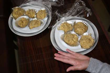 みんなで力をあわせてつくった栗きんとんが出来上がりました。なんとビッグなサイズの栗きんとんです!思わずハンバーグかおにまんじゅうかと思ったぐらいです!おいしそうですね。いただきま〜す。