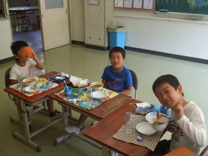枝豆を食べました(1) 公開日 2011/10/07 更新日 2011/10/07 今日のスナップ きのうの稲刈りの時に、田んぼの土手に植えてあった枝豆も収穫しました。これも地域の方が毎年植えてくださり、給食の時間に全校児童で食べました。特に今年はたくさん獲れ、おいしくいただきました。ごちそうさまでした!(残念ながら1年生は食べたあとでした。)