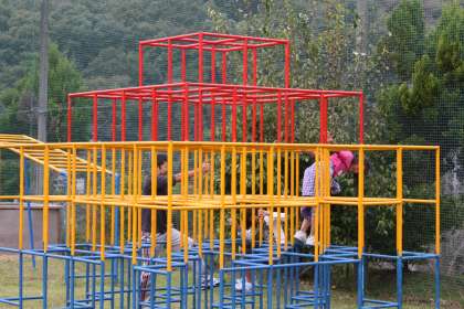 今日の20分放課では、いろいろな遊びをしていました。ジャングルジムを見ると、大きな先生と4年の女子が鬼ごっこ?を楽しそうにやっていました。グランドでは男子がサッカーで走り回っていました。元気いいですね!