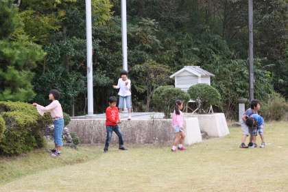 20分放課(2) 公開日 2011/10/13 更新日 2011/10/13 今日のスナップ 築山の近くでは、1,2年生が仲良くこれも鬼ごっこ(お姫様ごっこと言っていましたが・・・)みたいに走り回っていました。プール下の植え込みでは、2人の女子?が仲良く数珠玉?とよばれる実をとっていました。これでアクセサリーを作るそうです。できあがったら見せてもらいましょう。