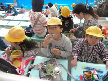 イルカショーが終わってから、お弁当タイムです。みんなおいしそうです。とても楽しかった一日でした。