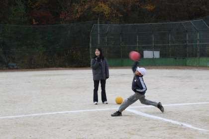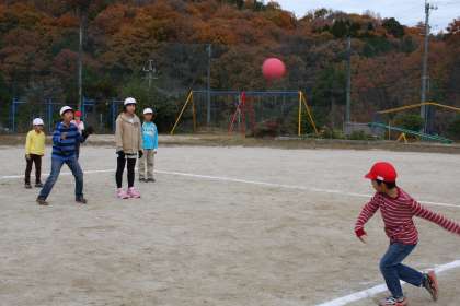 さあ次は”とっちゃだめ”です。運動会で行った種目を、班対抗で総あたりで行います。次こそは!と張り切っている子どもの表情がありました。