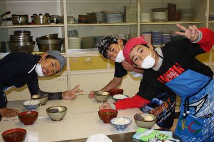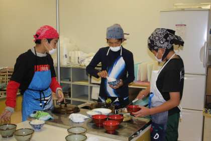 調理実習(1) 公開日 2011/12/12 更新日 2011/12/12 今日のスナップ 5,6年生が調理実習を行いました。献立はお味噌汁とごはん、おでんです。 慣れない手つきで、ごはんやお味噌汁をよそおいました。出来栄えはなかなかおいしそうです。