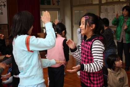 最後はみんな立ってからだを使って、楽しみました。誰かな?校長先生と絶好調な人は?