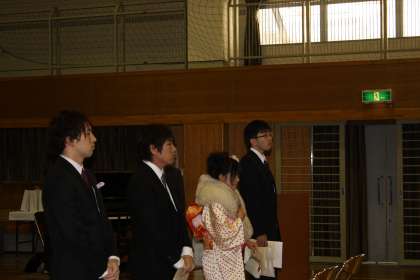 今年度の成人式は平成15年度の卒業生で、4人が成人しました。恩師の先生が7人もかけつけてくださり、なつかしい出会いにもなりました。