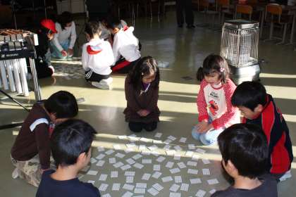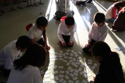 今週から2月2日の百人一首大会へ向けて各クラスで練習が始まっています。今日は初めての全体練習が音楽室で行われました。