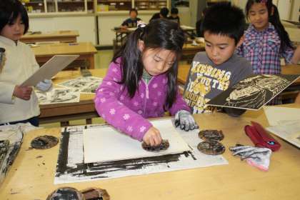 版画制作(3,4年生) 公開日 2012/01/26 更新日 2012/01/26 今日のスナップ 版画づくりもいよいよ完成に近づいてきました。みんな手や顔を黒くしながら、真剣に取り組んでいます。生き生きとした出来栄えですね。 できあがった版画は、これから審査されて入選作品が決まります。毎年優秀な作品が多い掛川小!今年は誰の作品が選ばれるでしょうか?