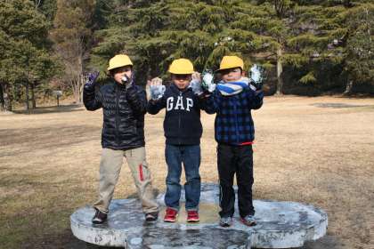 1年校外学習(1) 公開日 2012/01/27 更新日 2012/01/27 最近の行事から 今日は1年生が定光寺町方面へ校外学習に行きました。1年生が大好きな校区探検です。 まずは定光寺公園で雪あそび。そして大牧園地で水面の氷を割ったり、石を投げたりして遊びました。