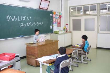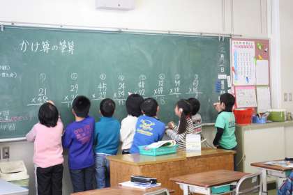 授業参観(1) 公開日 2012/02/02 更新日 2012/02/02 最近の行事から 3学期の授業参観が行われました。1年は国語”たぬきの糸車”、2年も国語”進んで考えを出し合おう”、3年は算数で”かけ算の筆算”でした。
