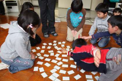 百人一首大会(1) 公開日 2012/02/03 更新日 2012/02/03 最近の行事から さあ、1カ月の練習の成果をみせる時がやってきました。 A,B,C,Dのグループに分かれ、競い合いました。それぞれのグループの1位に表彰状が出ますが、下の学年の子が上位のグループに入っていることもあり、そのこともすごいことだと思います。なお一番上位のAグループには3位まで賞状が出ます。 さあ、始まるとみんなの目は真剣!どのグループもかなりの接戦になっていました。
