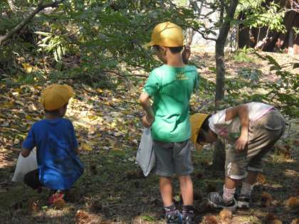 栗ひろい(1年生) その1 公開日 2012/10/10 更新日 2012/10/10 今日のスナップ 10月9日(火)3・4限目に、地域の方のご厚意で1年生が栗拾いに出かけました。大きな栗がたくさん落ちていました。拾っている途中で、いくつも栗が落ちてきました。