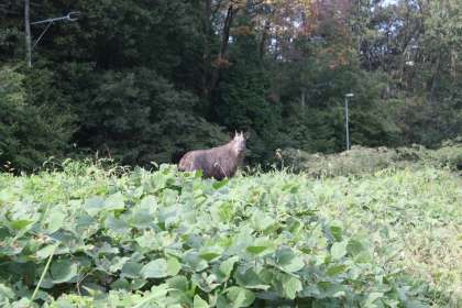 校門横の空き地にかもしかがやってきました。今年2回目の訪問です。お気に入りの場所になったのかもしれません。